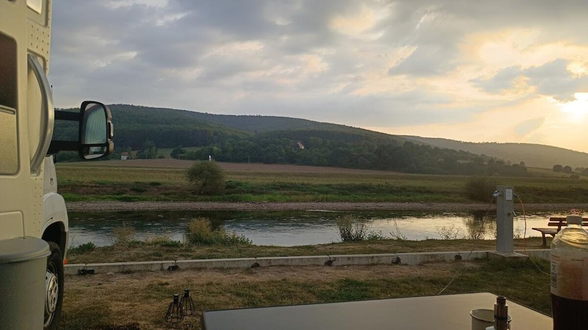 Unser Campingplatz Wesertal in Oedelsheim liegt in Nordhessen inmitten der Natur des Weserberglandes direkt am Fluss Weser. Von unseren Urlaubsstellplätzen, welche auf der Sonnenseite des Tales liegen, haben sie einen herrlichen Panoramablick ins Wesertal und auf den Reinhardswald. Das weitläufige Tal lädt Sie nicht nur zum Erholen ein. Radfahren, Wandern, Wassersport und Angeln sind nur ein paar Möglichkeiten. Einen Urlaub inmitten der Natur verspricht das Weserbergland, fern ab von Städten und Stress neue Kraft und Energie zu tanken. Sie sind mit dem Wohnmobil oder mit dem Caravan unterwegs und suchen einen schönen Stellplatz direkt am Ufer mit herrlichem Panoramablick auf das Wesertal? Dann sind Sie bei uns goldrichtig!